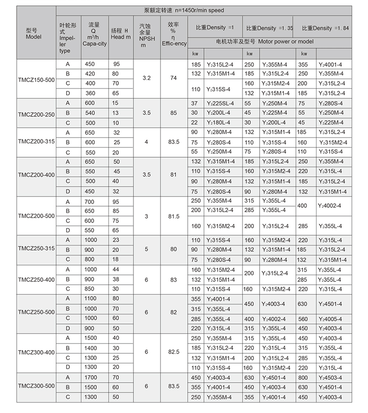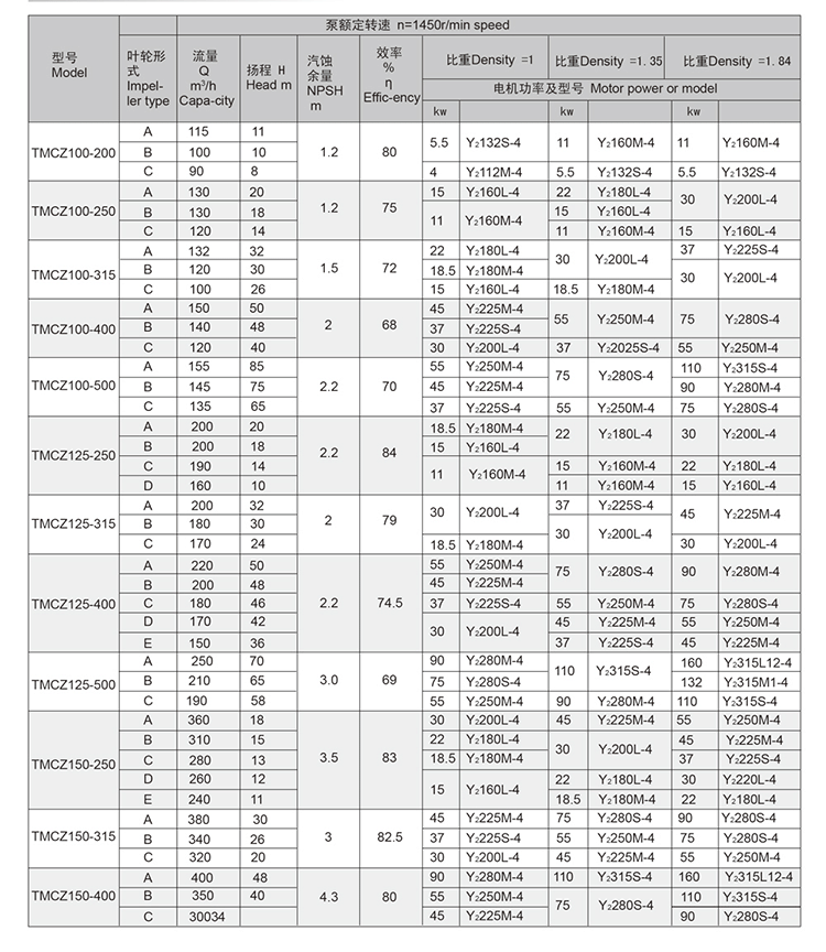TMCZ series of standard chemical pump performance range of the IH series of standard chemical pump all performance, its efficiency, cavitation performance and other indicators are more than IH type pump