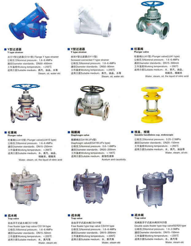 Filter, plunger valve, diaphragm valve, drain valve, as the